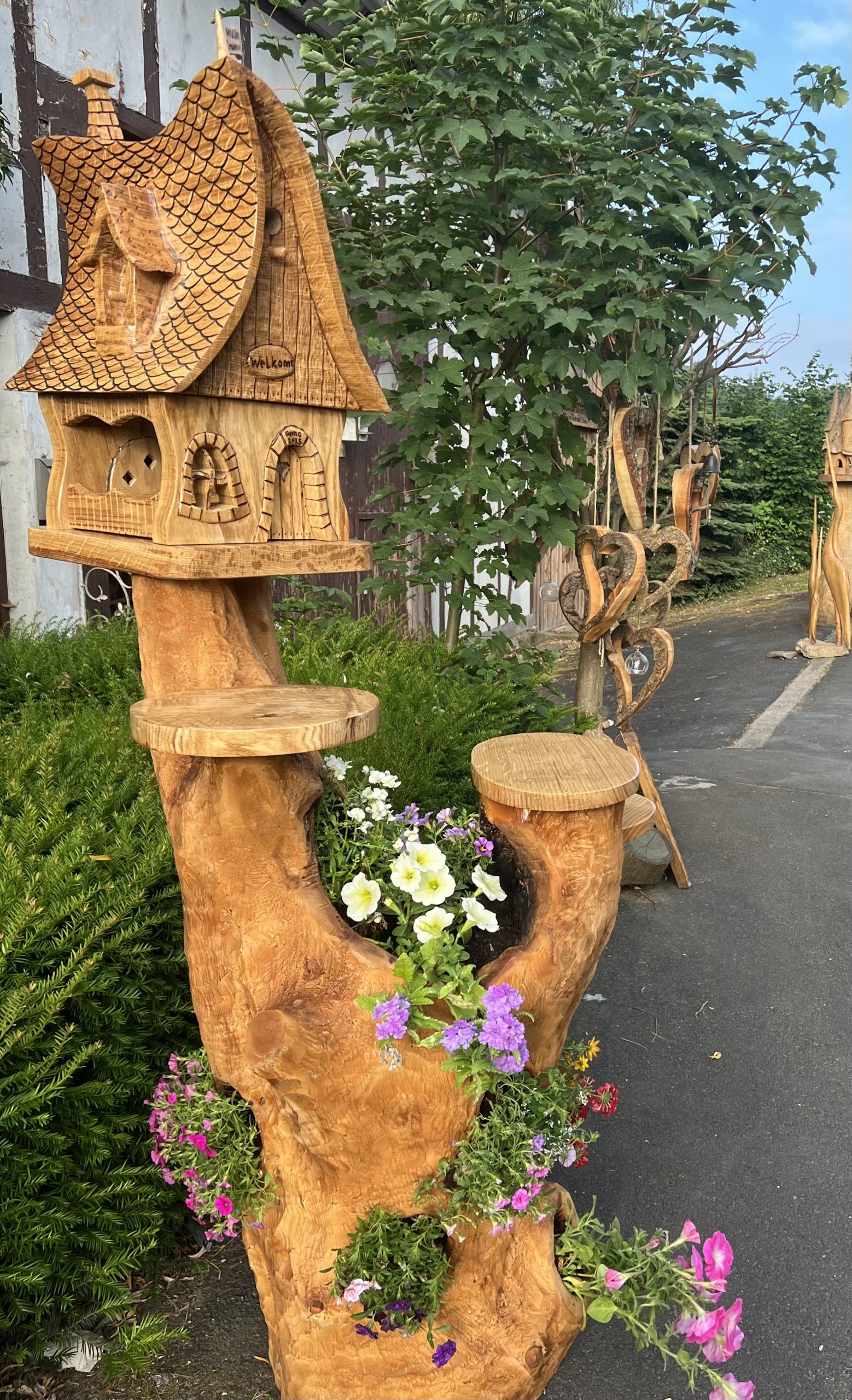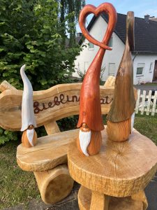 Entdecken Sie meine handgefertigten Einzelstücke und Unikate, die mit Leidenschaft und Handwerkskunst in meiner Werkstatt mit viel Liebe zum Detail mit der Kettensäge geschnitzt werden. In meiner Werkstatt wird gesägt, geformt, geschliffen und geölt.